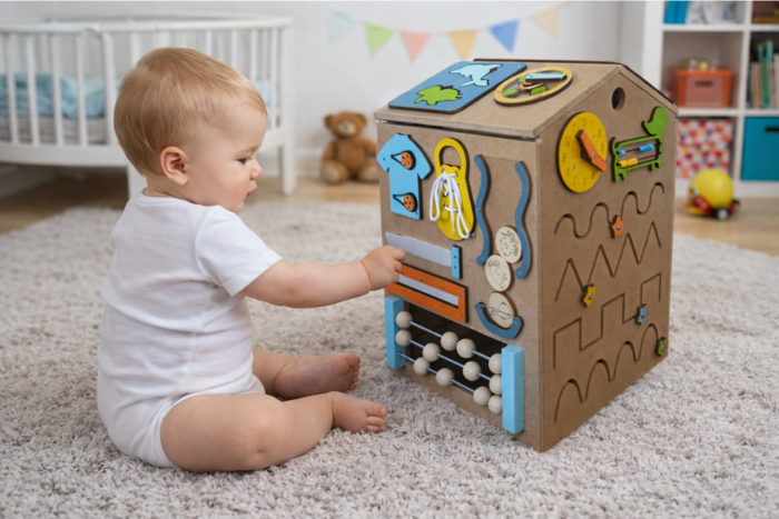 The sensory house offers your child a series of activities that promote the development of fine motor skills, concentration, and are also specific exercises and an incentive for speech development. Opening-closing, playing with hanging beads, driving the application, unlocking, stacking, are just some of the useful activities that the smart board offers. Through these activities, the child develops independence, a desire for exploration, and a desire for success.