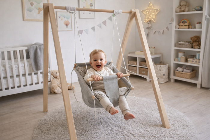Naš stalak izrađen je od punog drva javora s dimenzijama 45×45 mm, pružajući iznimnu čvrstoću i nosivost do 30 kg. Ovo je proizvod na koji možete računati i koji će vam pružiti bezbroj sretnih trenutaka ljuljanja i igre s vašim malenima.