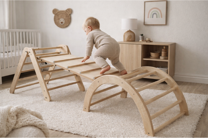 Uvedite svoje mališane u svijet igre, učenja i pustolovine uz naše pažljivo osmišljenI set za igru. Dizajnirani da potaknu tjelesni i kognitivni razvoj djece. Ovaj set je izrađen od visokokvalitetnog, ekološki prihvatljivog tvrdog drva. Kompaktni i svestrani set, uključujetobogan, penjalicu u obliku luka i sklopive trokutaste ljestve, pružajući sigurno, izdržljivo i zabavno okruženje za sate igre i istraživanja (može se naručiti zasebno)