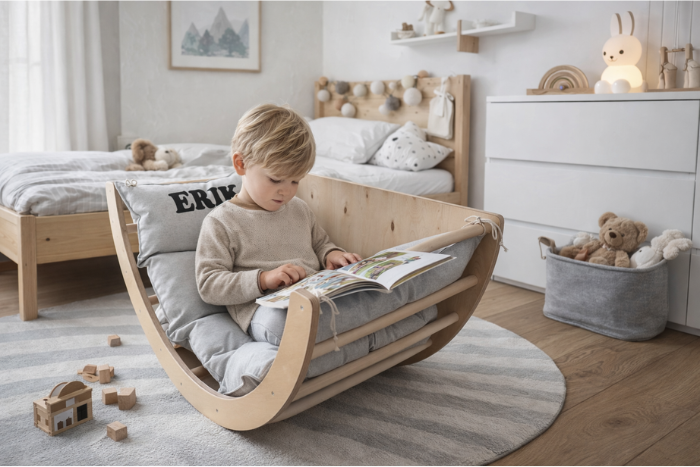 Rocking arch 4 u 1 jača mišiće i potiče ravnotežu, potiče imaginarnu igru, odličan je za razvoj grube motorike, pobuđuje maštu djeteta. Djeca će se ljuljati, pretvarati se da je čamac, stavljati jastuk i ležati u njemu, stavljati svoje lutke na spavanje, pretvarati ga u lutkarsku pozornicu, penjalicu, šator, stolić i još mnogo toga.